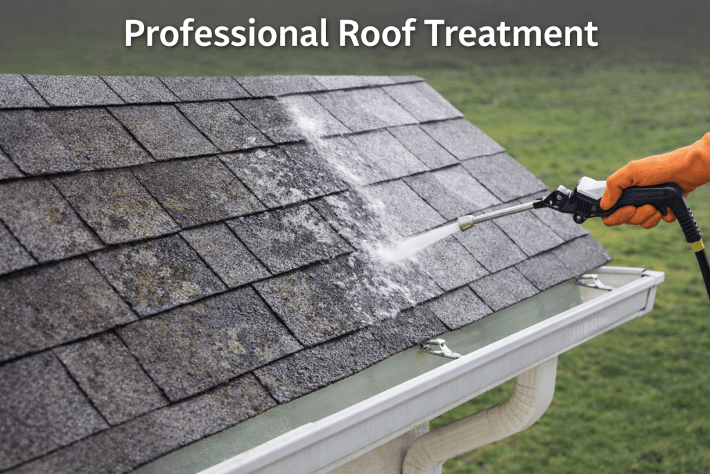 Roof treatment is one of the most effective ways to protect and extend the life of your roof without the cost of repairs or replacement. Over time, roofs naturally collect algae, moss, mildew, and organic buildup that can discolor shingles and slowly break down roofing materials if left untreated.